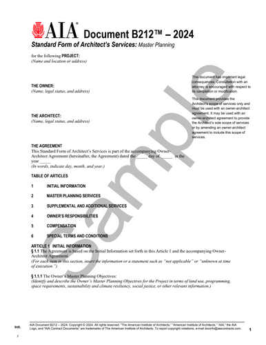 Understanding AIA Contract Documents B212-2024: Master Planning for Architects and Owners