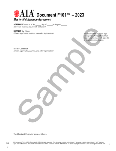 AIA Contract Documents New Facility Maintenance Agreements