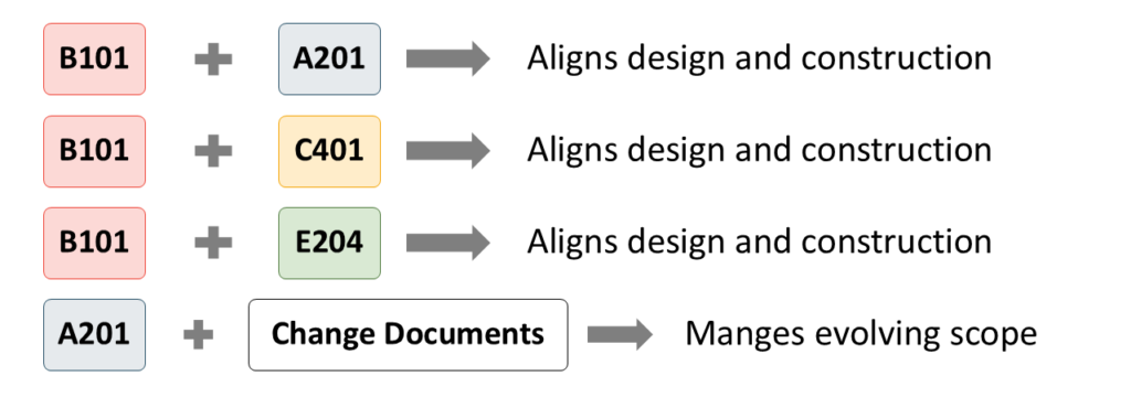 Scope changes are inevitable—but disputes don’t have to be. A201 works with key documents such as: